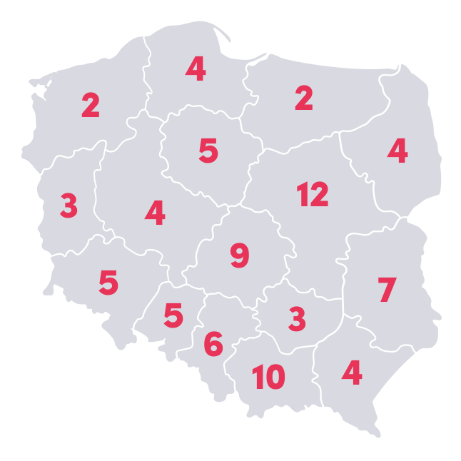 Oto skład KZK w rozbiciu na poszczególne województwa: