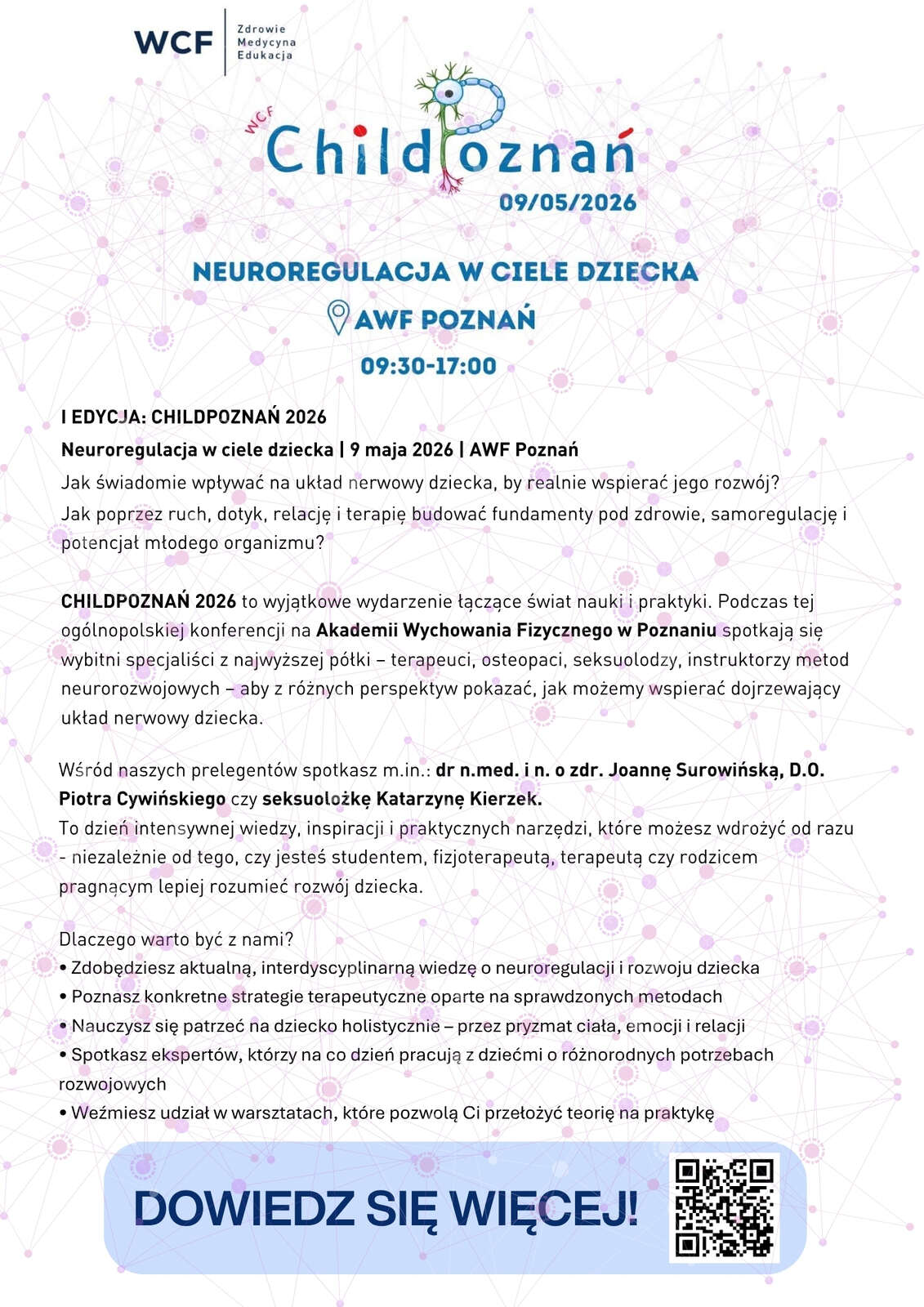 Krajowa Izba Fizjoterapeutów informuje o objęciu patronatem honorowym Prezes KRF konferencji szkoleniowo – warsztatowej “CHILDPOZNAŃ”