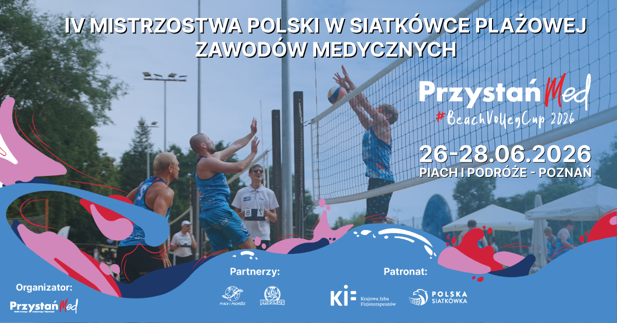 Krajowa Izba Fizjoterapeutów informuje o objęciu patronatem honorowym Prezes KRF IV Mistrzostw Polski zawodów medycznych w siatkówkę plażową Przystań Med #BeachVolleyCup 2026”