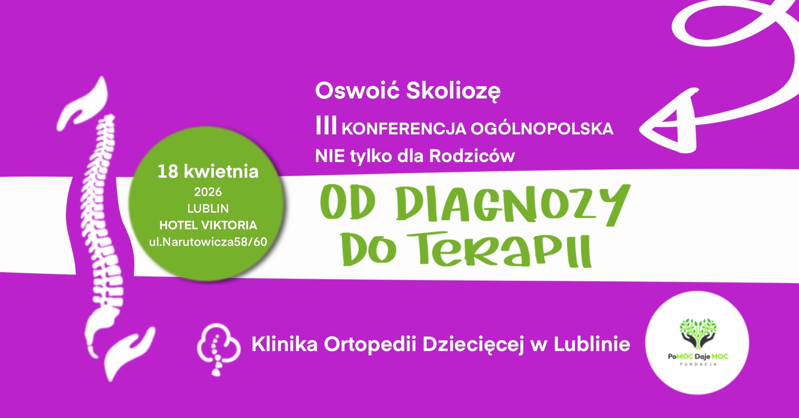 Diagnoza skoliozy u dziecka to dla rodzica moment pełen lęku i pytań, na które trudno znaleźć rzetelną odpowiedź. Już 18 kwietnia Lublin stanie się sercem unikalnego w skali kraju wydarzenia. „Oswoić skoliozę” III Ogólnopolska Konferencja NIE tylko dla rodziców to przestrzeń, w której wybitni specjaliści chorób kręgosłupa dzielą się swoją wiedzą i doświadczeniem, by służyć rodzinom i innym specjalistom.