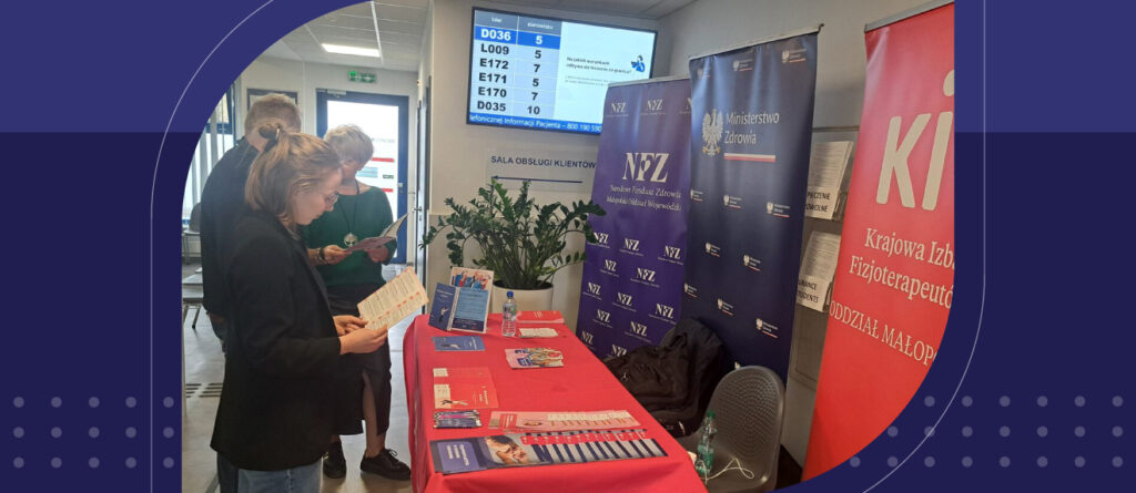 25 marca 2026 r. w Małopolskim Oddziale Wojewódzkim Narodowego Funduszu Zdrowia odbyła się kolejna edycja akcji „Środa z fizjoprofilaktyką” – wspólnej inicjatywy Krajowej Izby Fizjoterapeutów i NFZ. W trakcie wydarzenia uczestnicy mieli okazję zapoznać się z programami profilaktycznymi KIF, takimi jak „Aktywny senior w domu” oraz „Aktywna przerwa w pracy”, których celem jest promowanie aktywności fizycznej w różnych grupach wiekowych. Podczas indywidualnych rozmów eksperci podkreślali kluczową rolę regularnego ruchu w utrzymaniu zdrowia i sprawności. Omówiono również przykłady aktywności dostosowanych do wieku i możliwości pacjentów oraz zwrócono uwagę na znaczenie fizjoterapeutów zarówno w profilaktyce, jak i procesie powrotu do pełnej sprawności. KIF reprezentował koordynator wojewódzki Bogdan Boba.