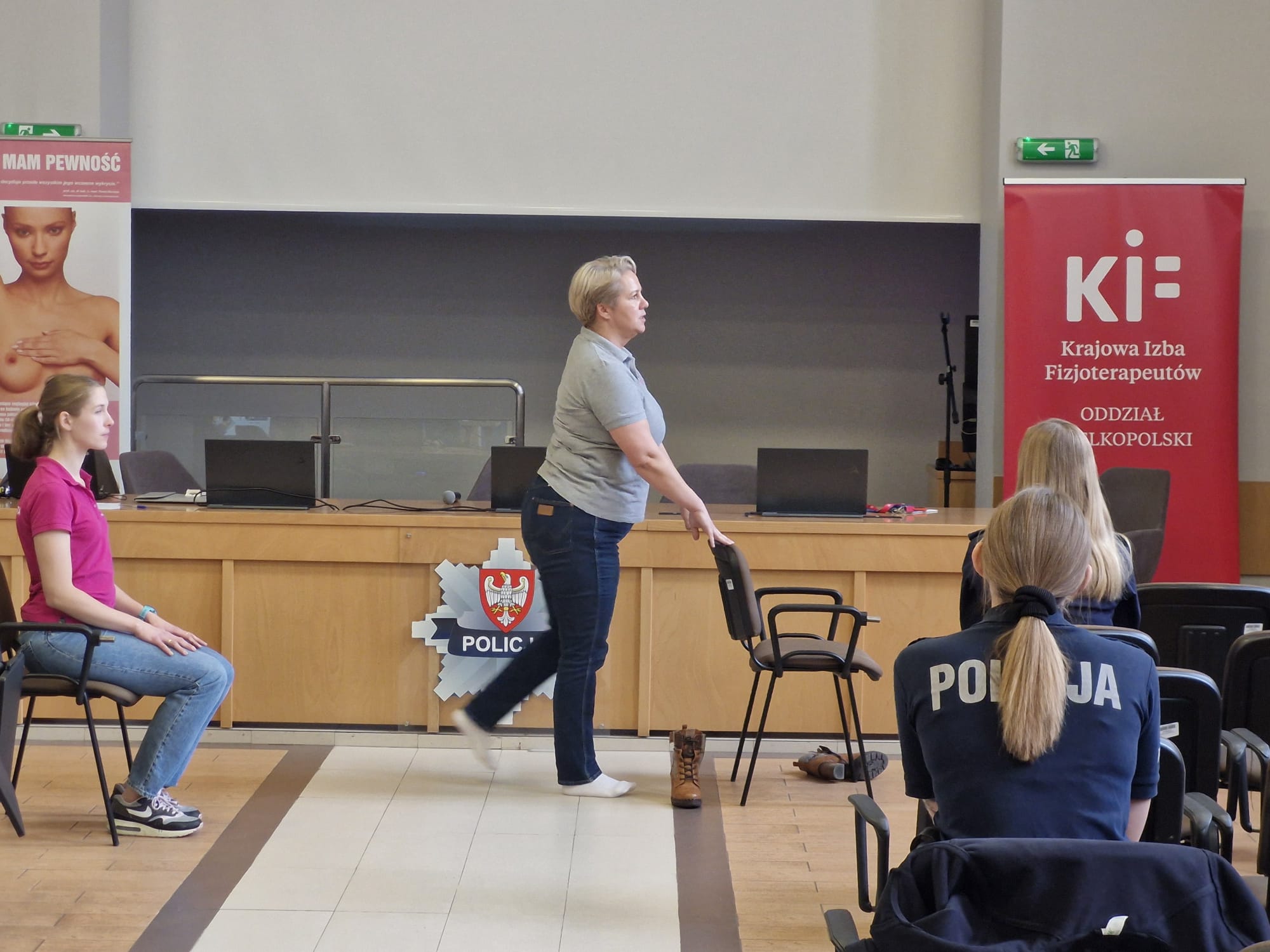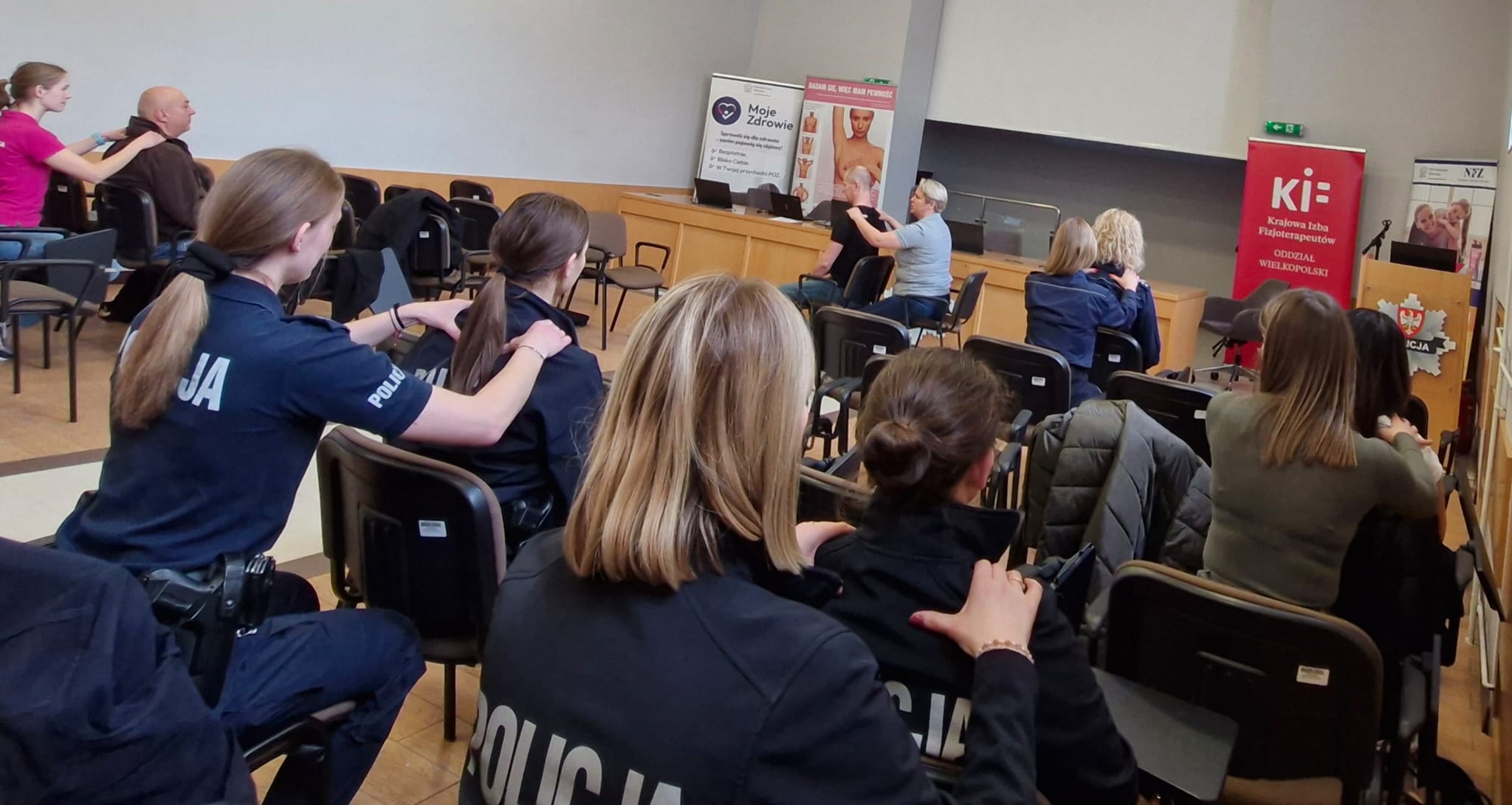W przerwach między prelekcjami pracownicy komendy odwiedzali stoisko KIF, gdzie korzystali z porad specjalistów, materiałów edukacyjnych oraz wskazówek dotyczących ergonomii pracy. Podkreślono także znaczenie fizjoterapeutów w profilaktyce oraz w budowaniu świadomości dotyczącej zdrowego i aktywnego stylu życia.