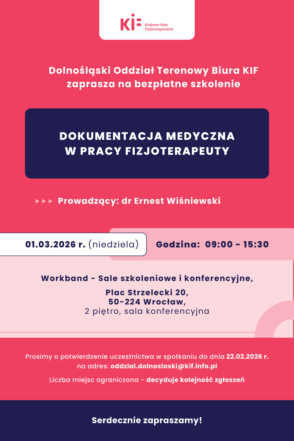 Prosimy o potwierdzenie uczestnictwa w spotkaniu do dnia 22.02.2026 r. na adres: [email protected]