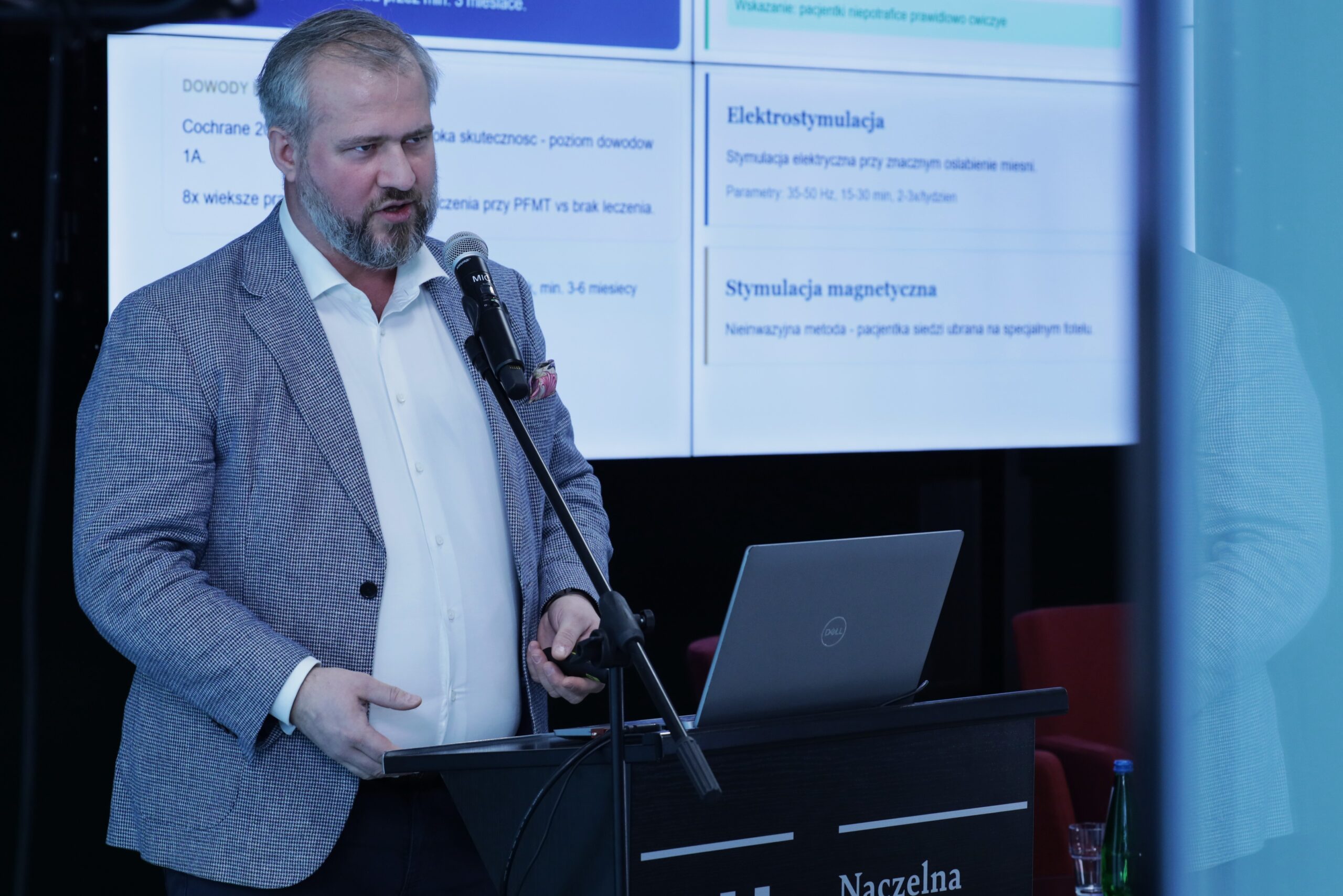Kolejnym obszarem poruszonym podczas spotkania była uroginekologia. Dr Michał Gontkiewicz, przewodniczący Zespołu ds. e-zdrowia NIL, omówił problem nietrzymania moczu u kobiet, podkreślając jego powszechność oraz społeczne i psychologiczne konsekwencje. Zwrócił uwagę na fakt, że wiele pacjentek nie zgłasza się po pomoc mimo dostępnych metod leczenia, co wynika m.in. z poczucia wstydu i bagatelizowania objawów. Podkreślił znaczenie współpracy lekarzy, fizjoterapeutów i psychologów oraz rolę farmakoterapii jako elementu uzupełniającego leczenie.