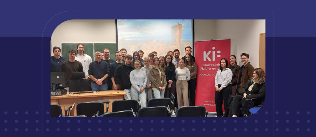 11 marca 2026 r. w Akademii Łomżyńskiej odbyło się spotkanie ze studentami IV i V roku kierunku fizjoterapia, w którym uczestniczył członek Krajowej Rady Fizjoterapeutów województwa podlaskiego Maciej Bogdan oraz Marta Gryc, Office Manager Oddziału Terenowego Biura KIF. Podczas wydarzenia przedstawiono